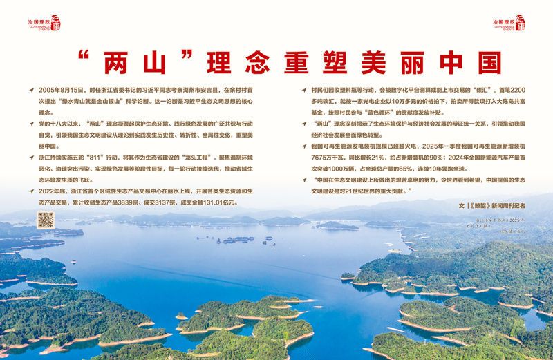 綠色昭示未來。面對保護生態(tài)環(huán)境的全球共同挑戰(zhàn),“綠水青山就是金山銀山”理念勃發(fā)實踐生命力,正在譜寫人與自然和諧共生、促進世界可持續(xù)發(fā)展的嶄新篇章。