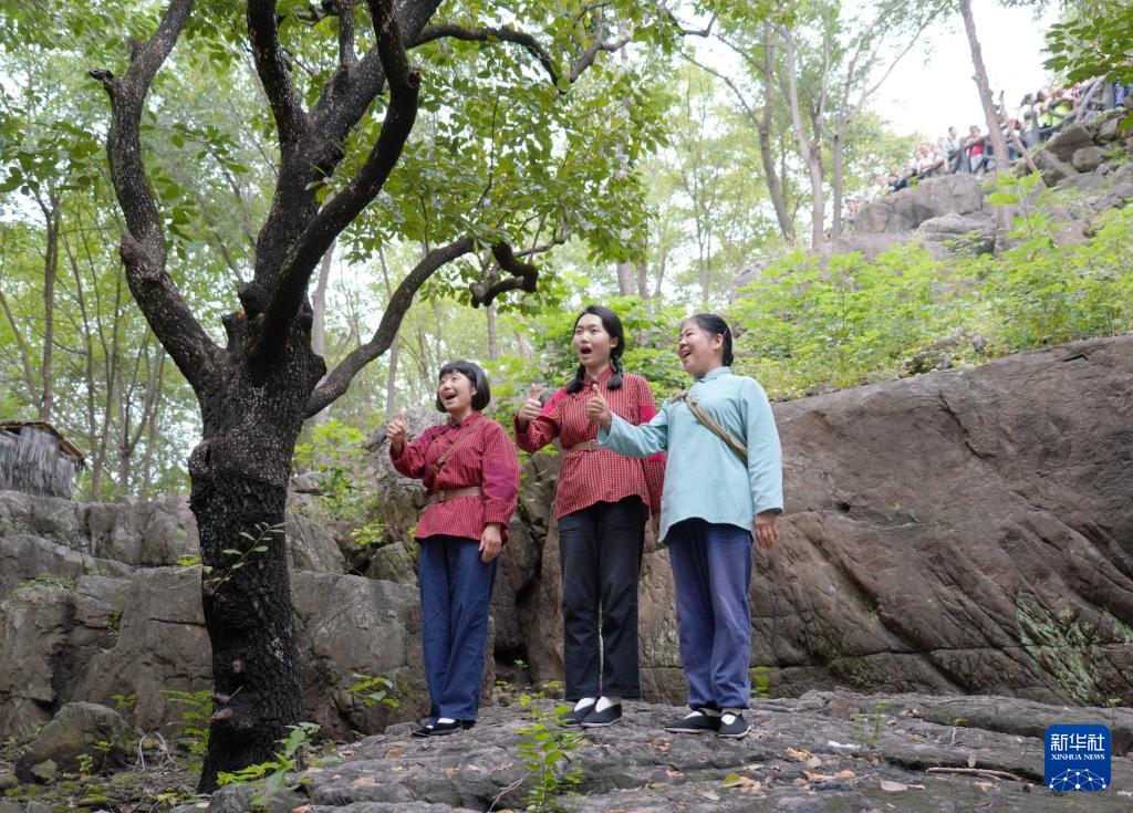10月3日在位于山東省臨沂市沂南縣的山東紅嫂家鄉(xiāng)旅游區(qū)拍攝的沉浸式體驗項目《重走支前路》中的一個環(huán)節(jié)。
