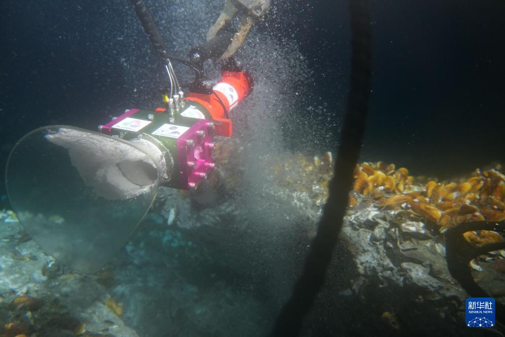 采火裝置在海底冷泉噴口采集可燃冰(9月18日攝)。