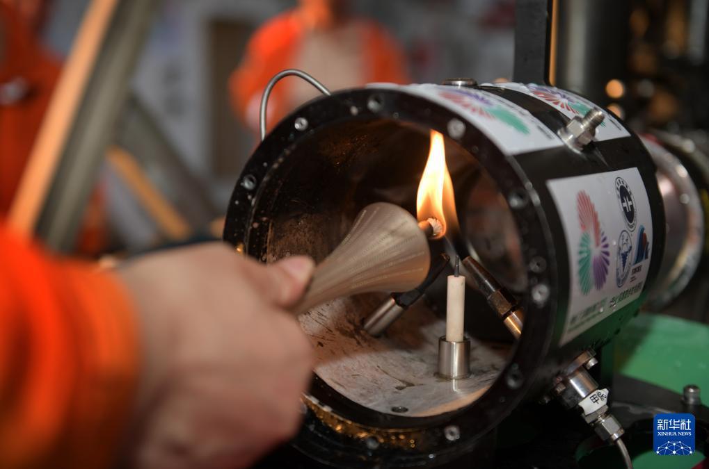 采火裝置在海底成功引燃“源火”(9月18日攝)。