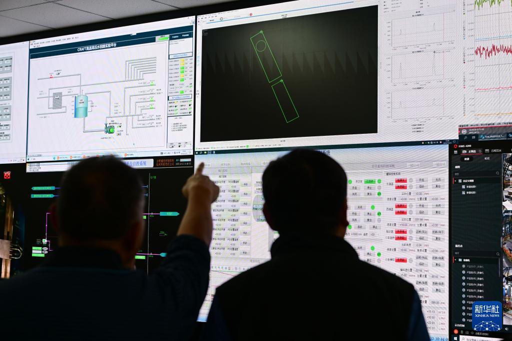 專家組在聚變堆主機關鍵系統(tǒng)綜合研究設施“夸父”(CRAFT)偏濾器原型部件測試現(xiàn)場(10月13日攝)。
