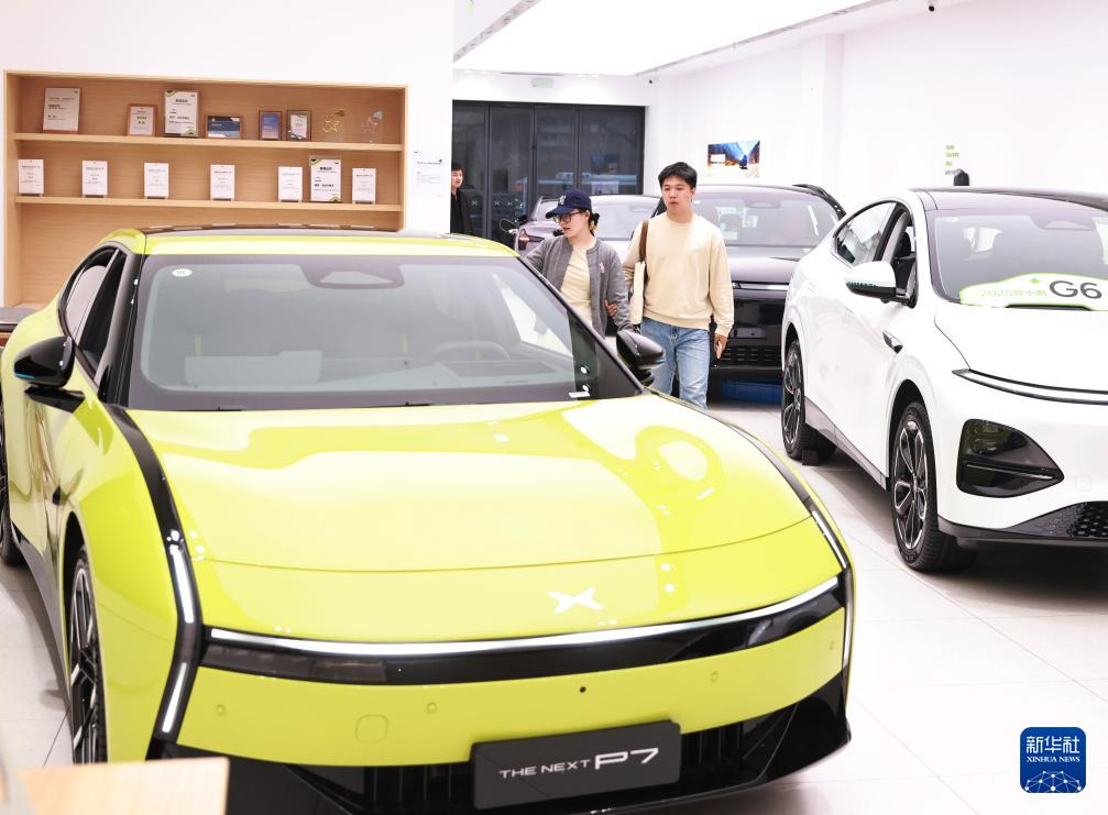 10月14日,在湖北省武漢市武昌區(qū)一家商場,顧客在選購新能源汽車。