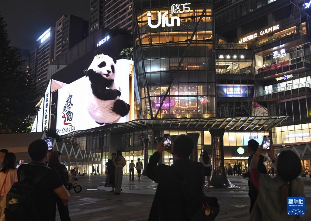 近日,成都高新區(qū)交子大道上的裸眼3D數(shù)字熊貓上了全新動(dòng)效,一只裸眼3D數(shù)字熊貓靈巧地“爬上”建筑外墻,不時(shí)“轉(zhuǎn)頭看向”圍觀人群,最后悠閑地“坐下”,吸引了眾多市民游客來(lái)此打卡。