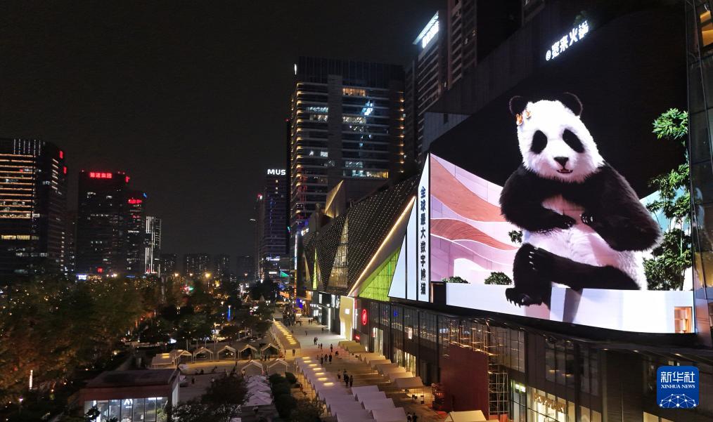 10月14日拍攝的裸眼3D數(shù)字熊貓。
