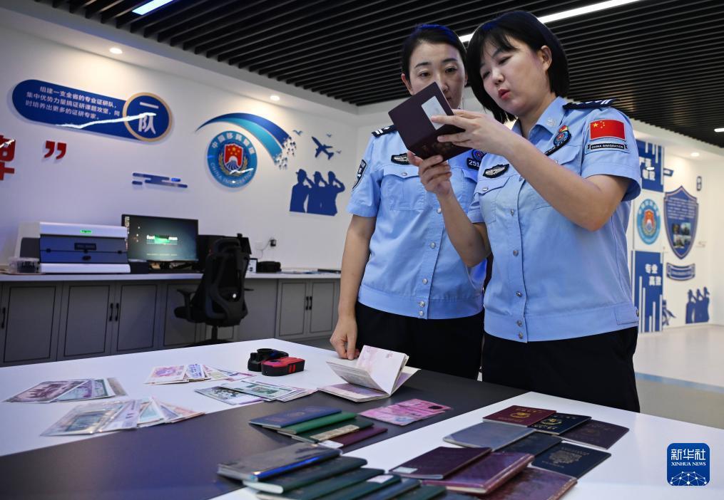 這是10月14日拍攝的青島機(jī)場邊檢站證研室。這里收集存放了大量護(hù)照樣本供隨時查閱對比。