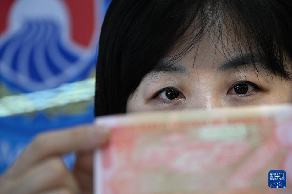 10月14日,移民管理警察曹銳在進(jìn)行票據(jù)真?zhèn)巫R別。