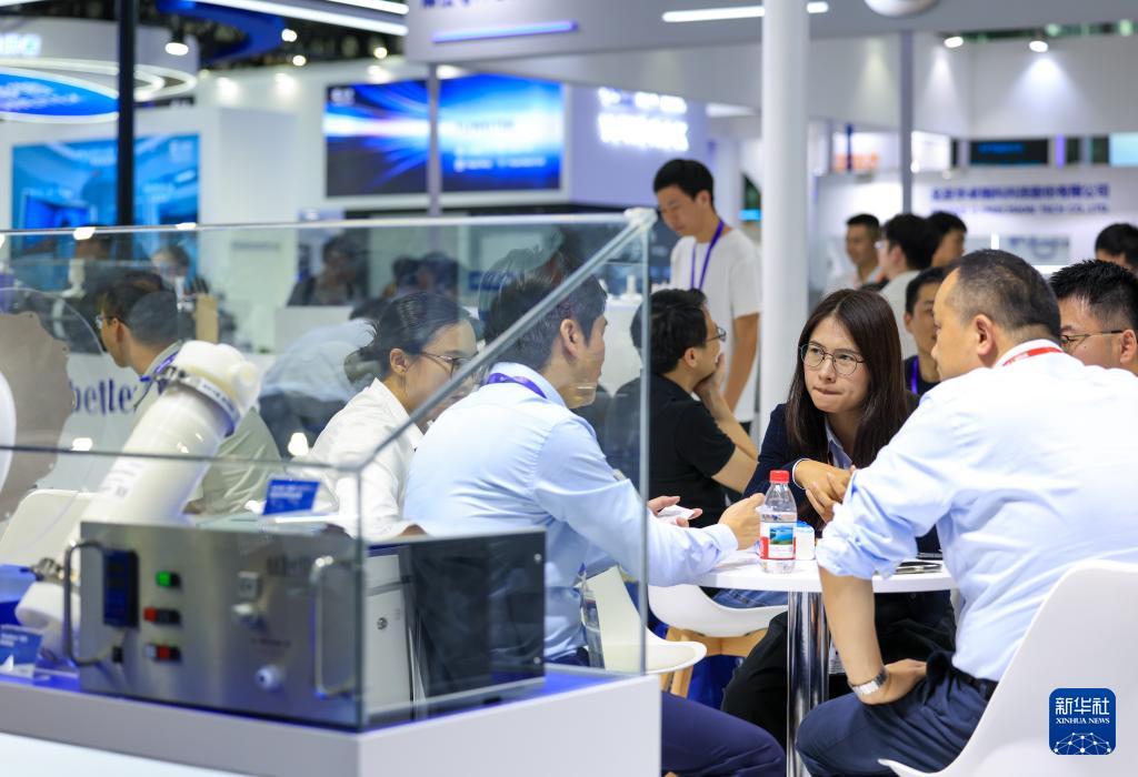 10月15日,客商在一家半導體企業(yè)展臺交流。