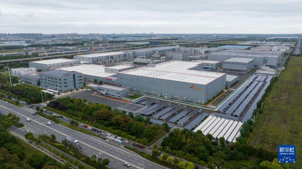 位于中韓(鹽城)產(chǎn)業(yè)園內(nèi)的SK新能源一期動力電池生產(chǎn)基地(10月16日攝,無人機(jī)照片)。