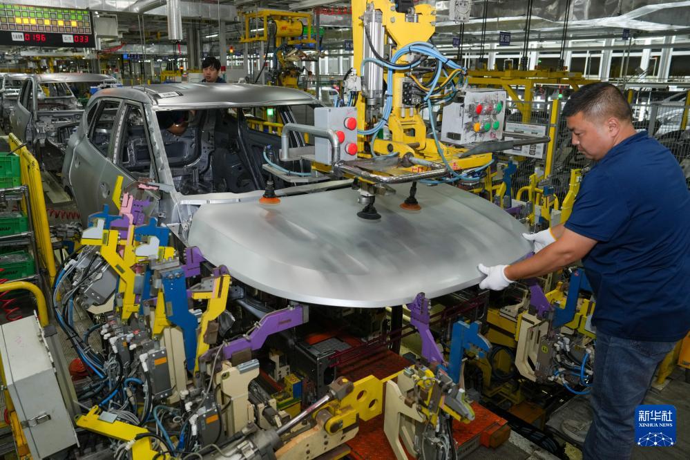 工人在佛吉亞(鹽城)汽車部件系統(tǒng)有限公司汽車配件生產(chǎn)車間內(nèi)工作(9月18日攝)。