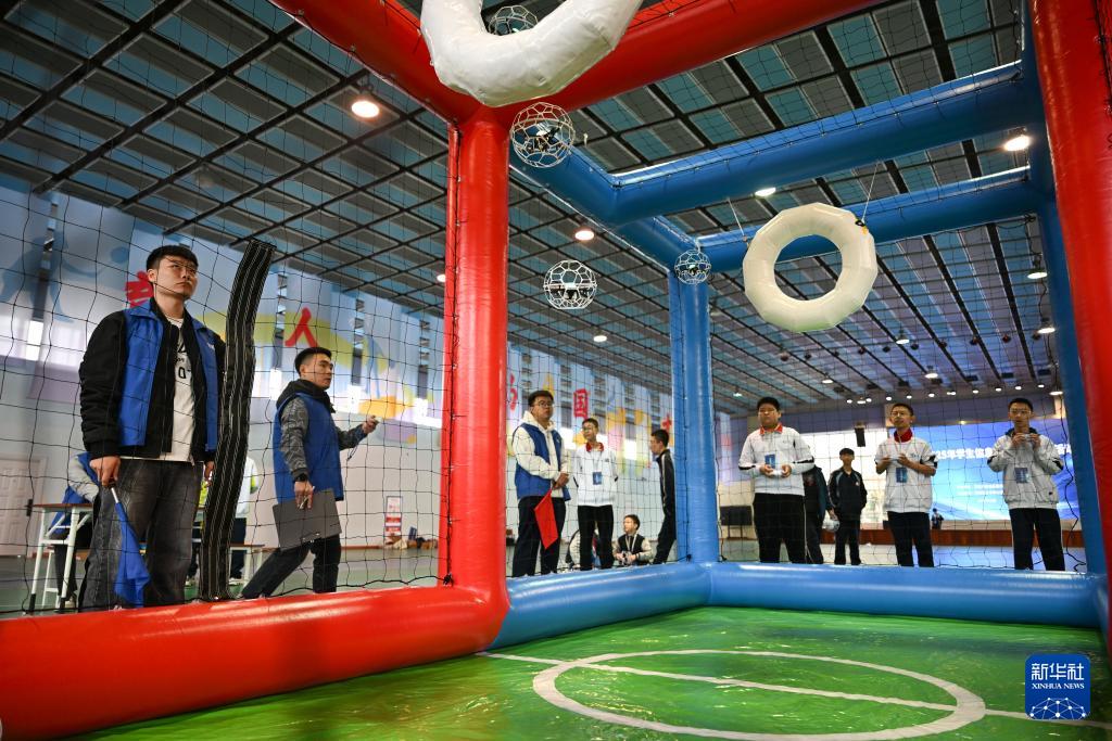 10月18日,學(xué)生在西安市新城區(qū)太華路小學(xué)參加多軸無人機(jī)足球?qū)官悺?/p>