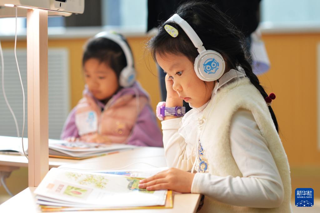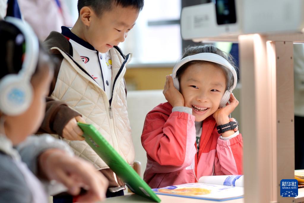 10月18日,小朋友在閱讀館體驗AI閱讀。