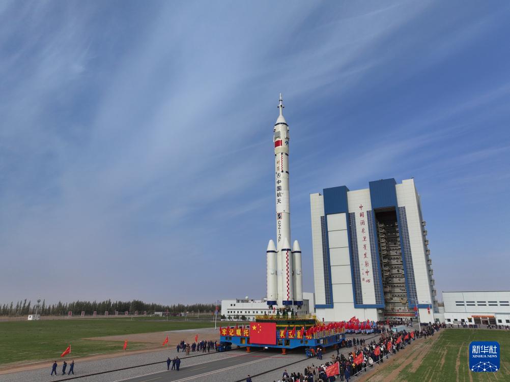 10月24日,神舟二十一號(hào)載人飛船與長(zhǎng)征二號(hào)F遙二十一運(yùn)載火箭組合體準(zhǔn)備轉(zhuǎn)運(yùn)。
