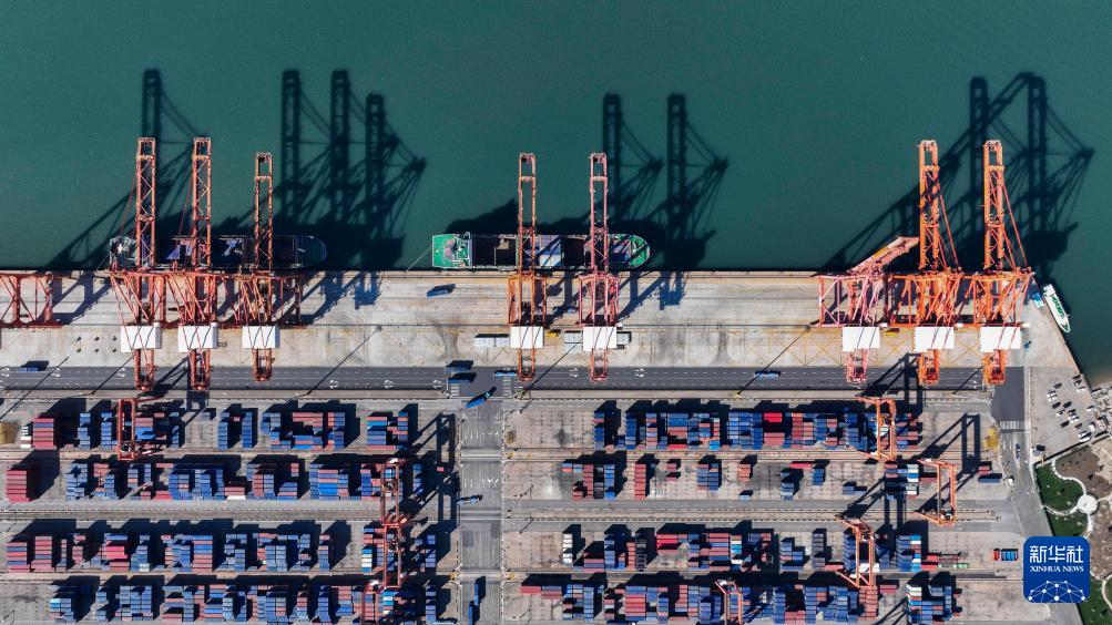10月27日拍攝的河北省唐山港京唐港區(qū)集裝箱碼頭(無(wú)人機(jī)照片)。