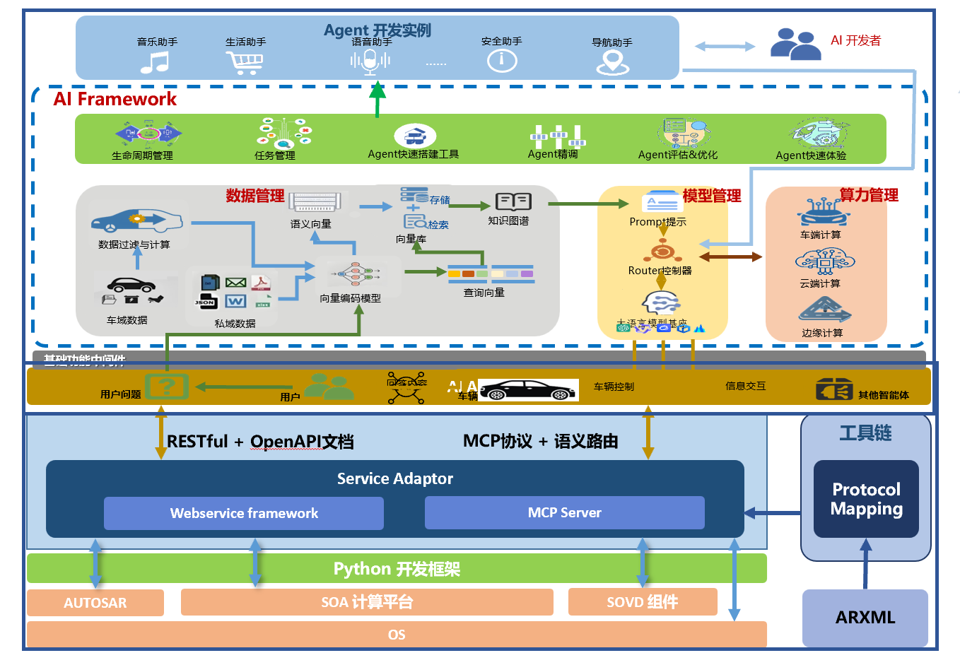 針對(duì)AIOS智能演化方面,李冰介紹:整車(chē)SOA(面向服務(wù)的軟件架構(gòu))之所以是AIOS(人工智能操作系統(tǒng))的底層根基,本質(zhì)是它為AIOS的“智能調(diào)度能力”提供了“可操作、可協(xié)同、可擴(kuò)展”的服務(wù)基座,解決AI智能體如何將抽象需求轉(zhuǎn)化為具體服務(wù)組合的核心問(wèn)題,是 AIOS 實(shí)現(xiàn)跨域聯(lián)動(dòng)、動(dòng)態(tài)適配的前提。