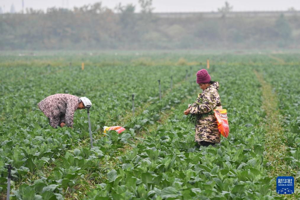 10月30日,菜農(nóng)在沅江市草尾鎮(zhèn)樂(lè)園村蔬菜田里采收蔬菜。