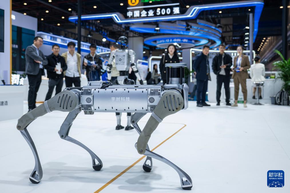 10月31日,觀眾在博覽會現(xiàn)場參觀宇樹科技的智能機(jī)器狗。
