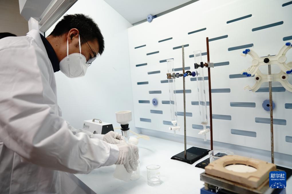 10月24日,科研人員在2兆瓦液態(tài)燃料釷基熔鹽實驗堆廠房,用機械手分析燃料鹽樣品。