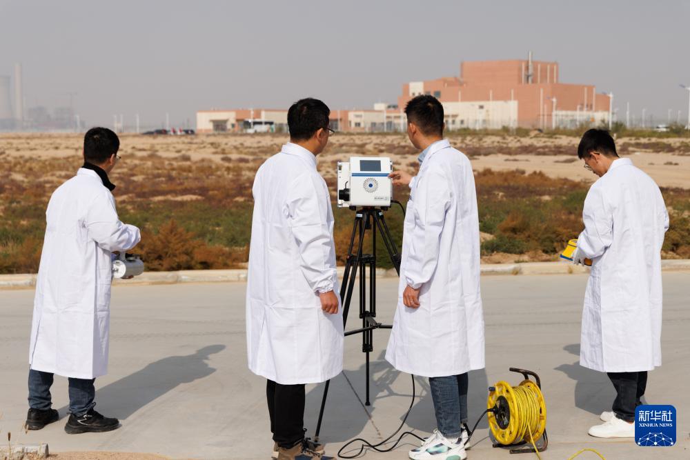 10月24日,在中國科學院上海應用物理研究所武威園區(qū),工作人員在開展后續(xù)建設現(xiàn)場討論。