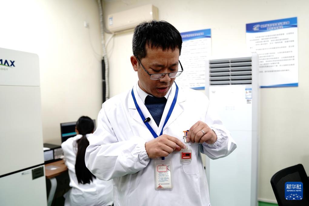 10月24日,在中國科學院上海應用物理研究所武威園區(qū),一位工作人員在佩戴“熱釋光個人劑量計”,該儀器可隨時測量輻射的個人計量當量以確保安全。