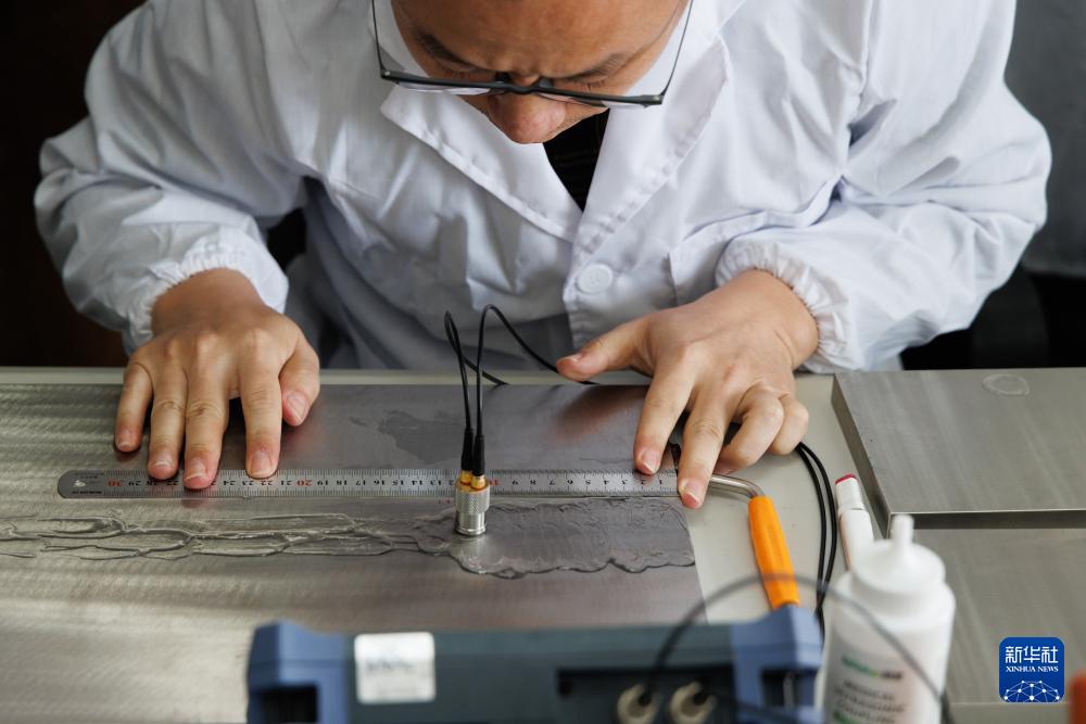 10月23日,在位于中國科學院上海應用物理研究所嘉定園區(qū)的無損檢測實驗室,科研人員在觀察用于建設液態(tài)燃料釷基熔鹽實驗堆的合金材料的焊接質量。
