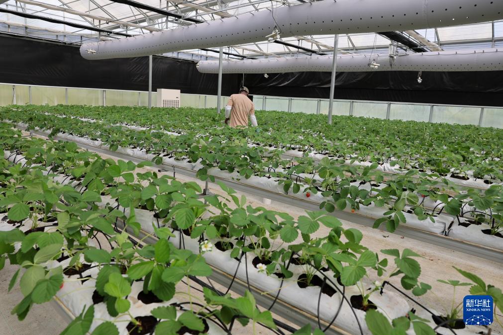 這是11月3日在文萊斯里巴加灣市郊一處農(nóng)業(yè)科技產(chǎn)業(yè)園拍攝的運用中國農(nóng)業(yè)技術(shù)和設(shè)備培育出的草莓。