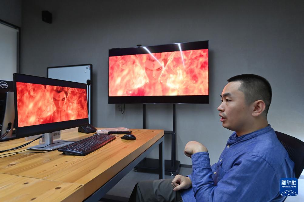 11月2日,墨境天合成都數(shù)字圖像科技有限公司總監(jiān)邢明禮在介紹公司業(yè)務(wù)。墨境天合成都數(shù)字圖像科技有限公司專注于國(guó)內(nèi)頂級(jí)視覺(jué)特效與動(dòng)畫(huà)制作,參與《哪吒之魔童鬧?!返冉俨侩娪耙曅е谱?。