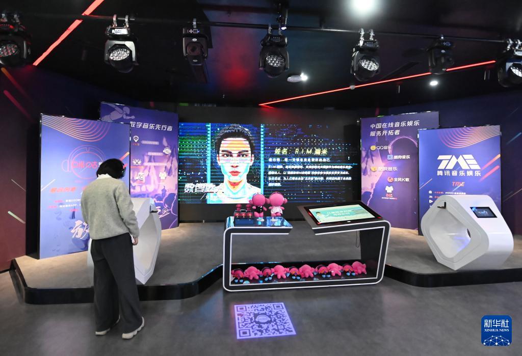 這是11月2日在成都市天府長(zhǎng)島數(shù)字文創(chuàng)園拍攝的騰訊音樂(lè)娛樂(lè)展臺(tái)。天府長(zhǎng)島數(shù)字文創(chuàng)園是成都高新區(qū)圍繞數(shù)字文創(chuàng)產(chǎn)業(yè)策劃打造的專業(yè)園區(qū)。