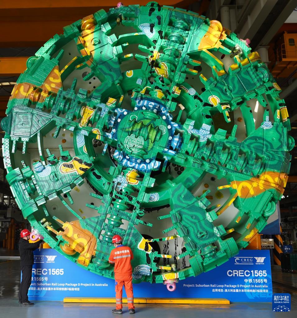 11月3日,工人在位于河南鄭州的中鐵裝備集團車間進行盾構機下線驗收工作。