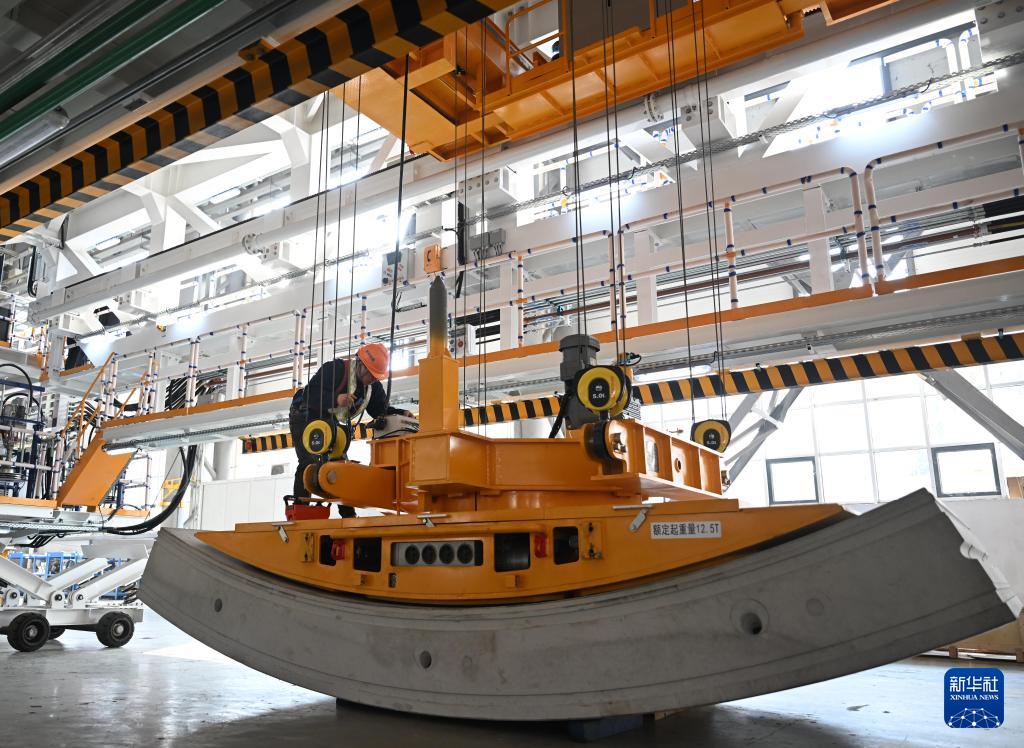 11月3日,工人在位于河南鄭州的中鐵裝備集團車間進行盾構機管片吊機負載調(diào)試。