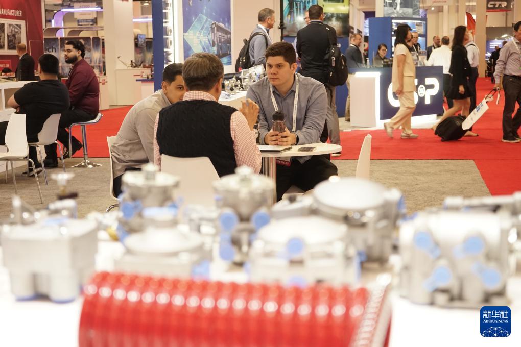 這是11月4日在美國(guó)內(nèi)華達(dá)州拉斯維加斯拍攝的展會(huì)現(xiàn)場(chǎng)。