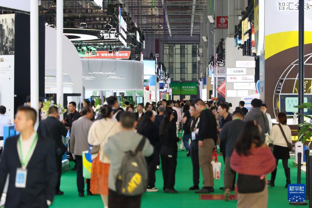 11月9日拍攝的第八屆進(jìn)博會(huì)服務(wù)貿(mào)易展區(qū)。