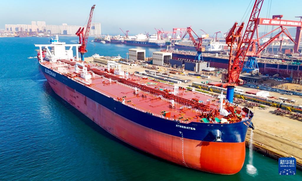 11月10日,中船北海造船在山東青島西海岸新區(qū)向比利時(shí)船東交付31.9萬(wàn)噸氨預(yù)留超大型原油船。
