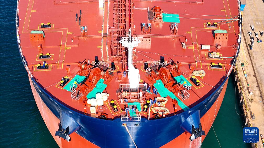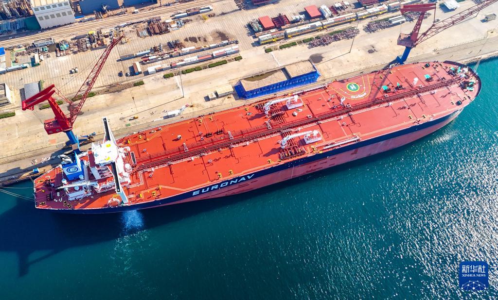 11月10日,氨預(yù)留超大型原油船在青島西海岸新區(qū)交付(無(wú)人機(jī)照片)。