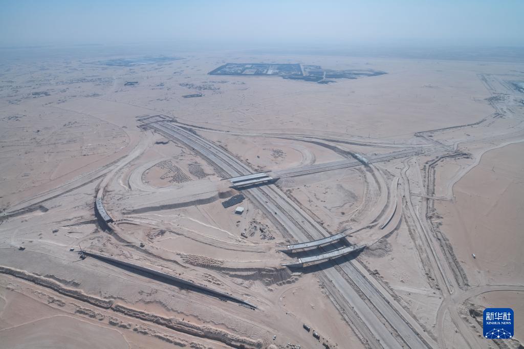 這是2025年11月1日在科威特杰赫拉省拍攝的南薩阿德阿卜杜拉新城基礎(chǔ)設(shè)施項目施工現(xiàn)場(無人機(jī)照片)。