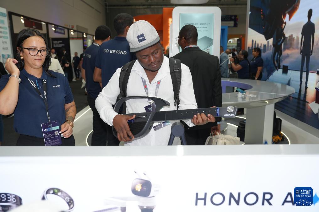 11月11日,在南非開普敦,人們參觀2025年非洲科技節(jié)上的中國(guó)企業(yè)展臺(tái)。