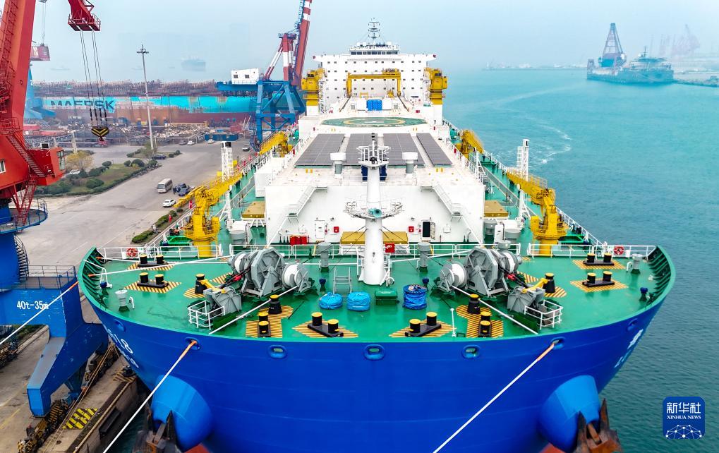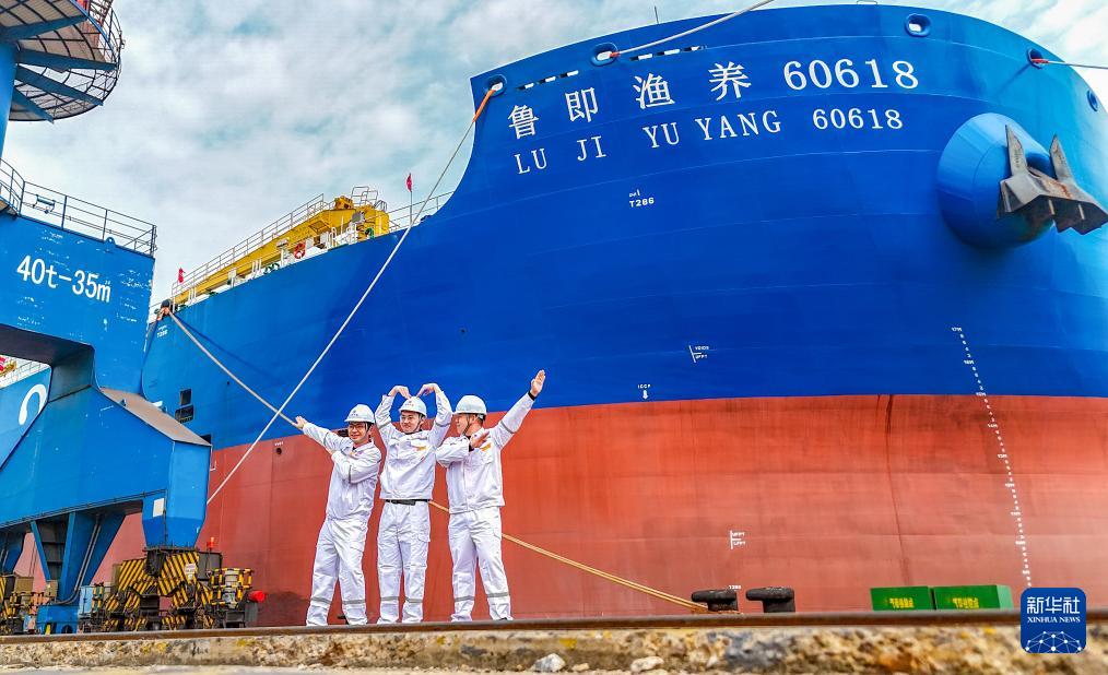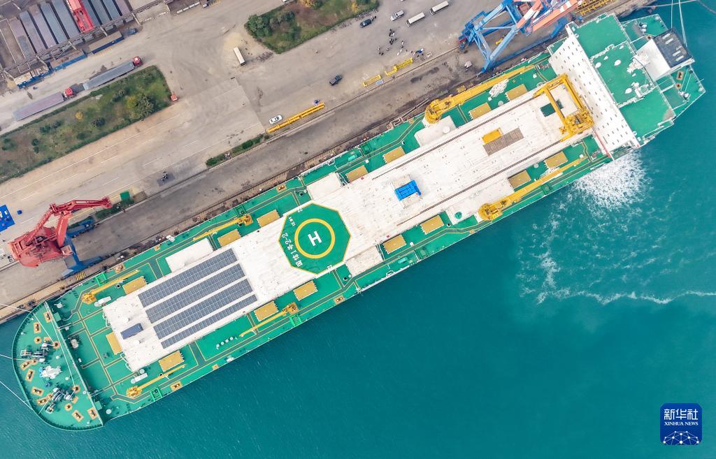 11月15日在中國(guó)船舶集團(tuán)青島北海造船有限公司拍攝的“國(guó)信1號(hào)2-2”船(無(wú)人機(jī)照片)。