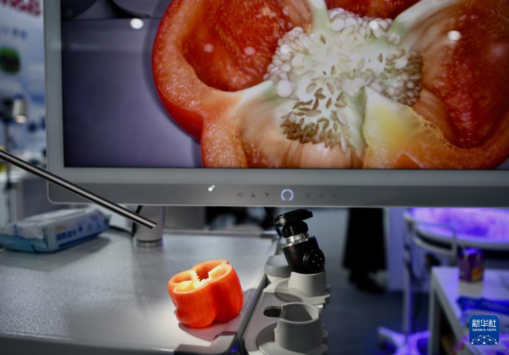 這是11月17日在德國杜塞爾多夫國際醫(yī)療器械設(shè)備展上拍攝的醫(yī)用光學(xué)設(shè)備。