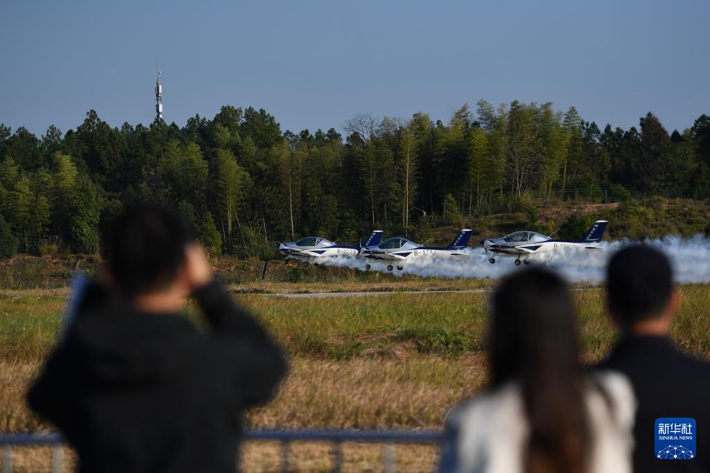 11月21日,觀眾在株洲蘆淞機(jī)場(chǎng)觀看動(dòng)態(tài)飛行表演。