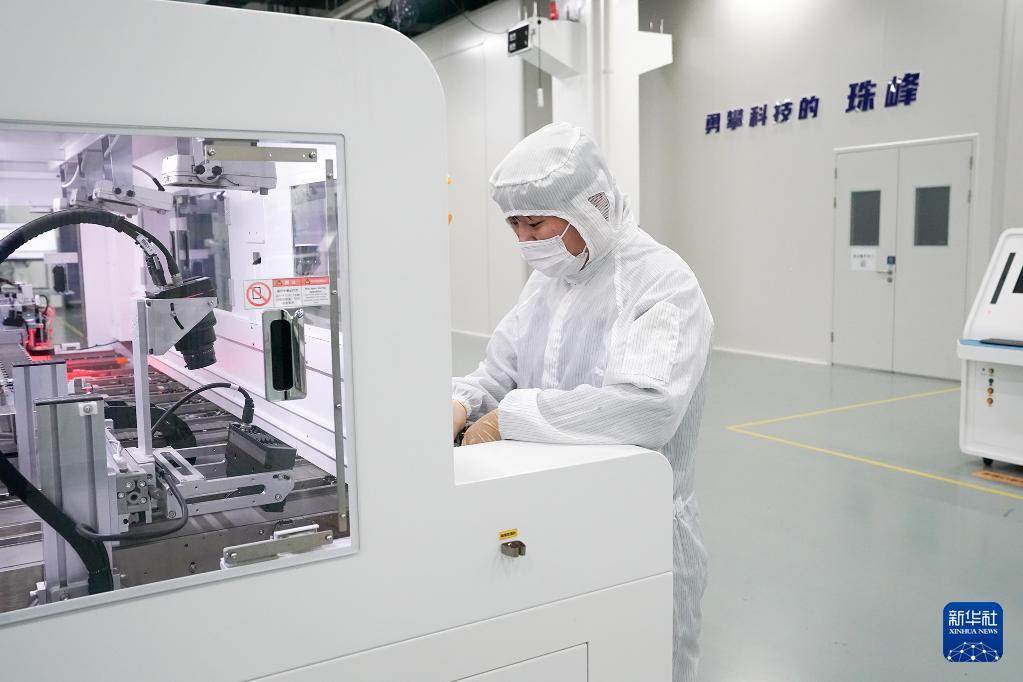 11月26日,在蘇州華興源創(chuàng)科技股份有限公司,工程師對(duì)先進(jìn)封裝芯片進(jìn)行測(cè)試。