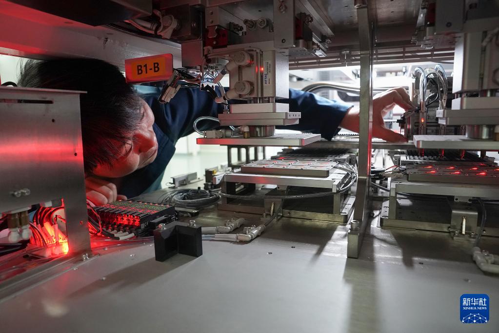 11月26日,在蘇州華興源創(chuàng)科技股份有限公司,工程師調(diào)試設(shè)備。