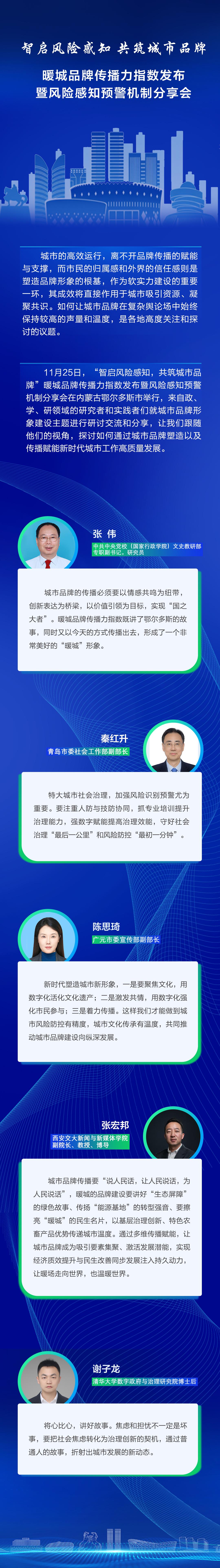 本報(bào)訊(記者 葉偉)11月25日,“智啟風(fēng)險(xiǎn)感知,共筑城市品牌”暖城品牌傳播力指數(shù)發(fā)布暨風(fēng)險(xiǎn)感知預(yù)警機(jī)制分享會(huì)在內(nèi)蒙古鄂爾多斯市舉行,來自政、學(xué)、研領(lǐng)域的研究者和實(shí)踐者們就城市品牌形象建設(shè)主題進(jìn)行研討交流和分享,讓我們跟隨他們的視角,探討如何通過城市品牌塑造以及傳播賦能新時(shí)代城市工作高質(zhì)量發(fā)展。