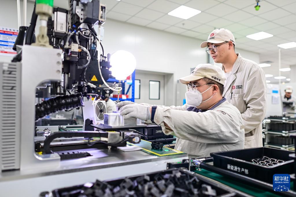 11月27日,寧波中車時代傳感技術(shù)有限公司員工在生產(chǎn)線上工作。