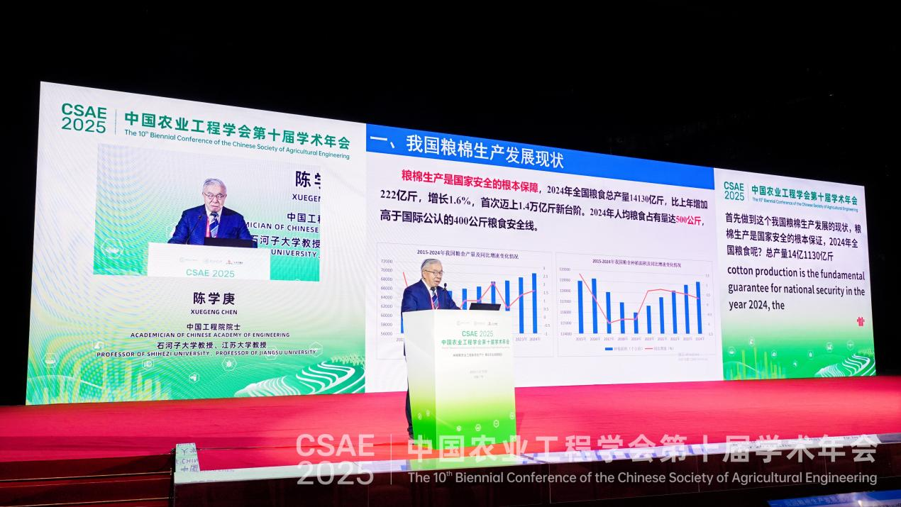 在會(huì)議當(dāng)天上午的主旨報(bào)告環(huán)節(jié),第十四屆全國政協(xié)委員、中國農(nóng)業(yè)科學(xué)院鄉(xiāng)村振興研究院院長、中國農(nóng)業(yè)科學(xué)院原黨組書記張合成;中國工程院院士、華南農(nóng)業(yè)大學(xué)教授羅錫文;第十四屆全國人大常委會(huì)委員、西北農(nóng)林科技大學(xué)校長、黨委副書記吳普特;中國工程院院士,新疆石河子大學(xué)、江蘇大學(xué)教授陳學(xué)庚,先后以《新時(shí)代城鄉(xiāng)融合發(fā)展態(tài)勢觀察》《中國智慧農(nóng)業(yè)的研究進(jìn)展》《西北綠洲農(nóng)業(yè)精量微灌水肥協(xié)同調(diào)控技術(shù)與設(shè)備》《智慧農(nóng)業(yè)技術(shù)與裝備促進(jìn)糧棉生產(chǎn)創(chuàng)新發(fā)展》為題做主旨報(bào)告。新晉院士李洪文也出席了開幕會(huì)。