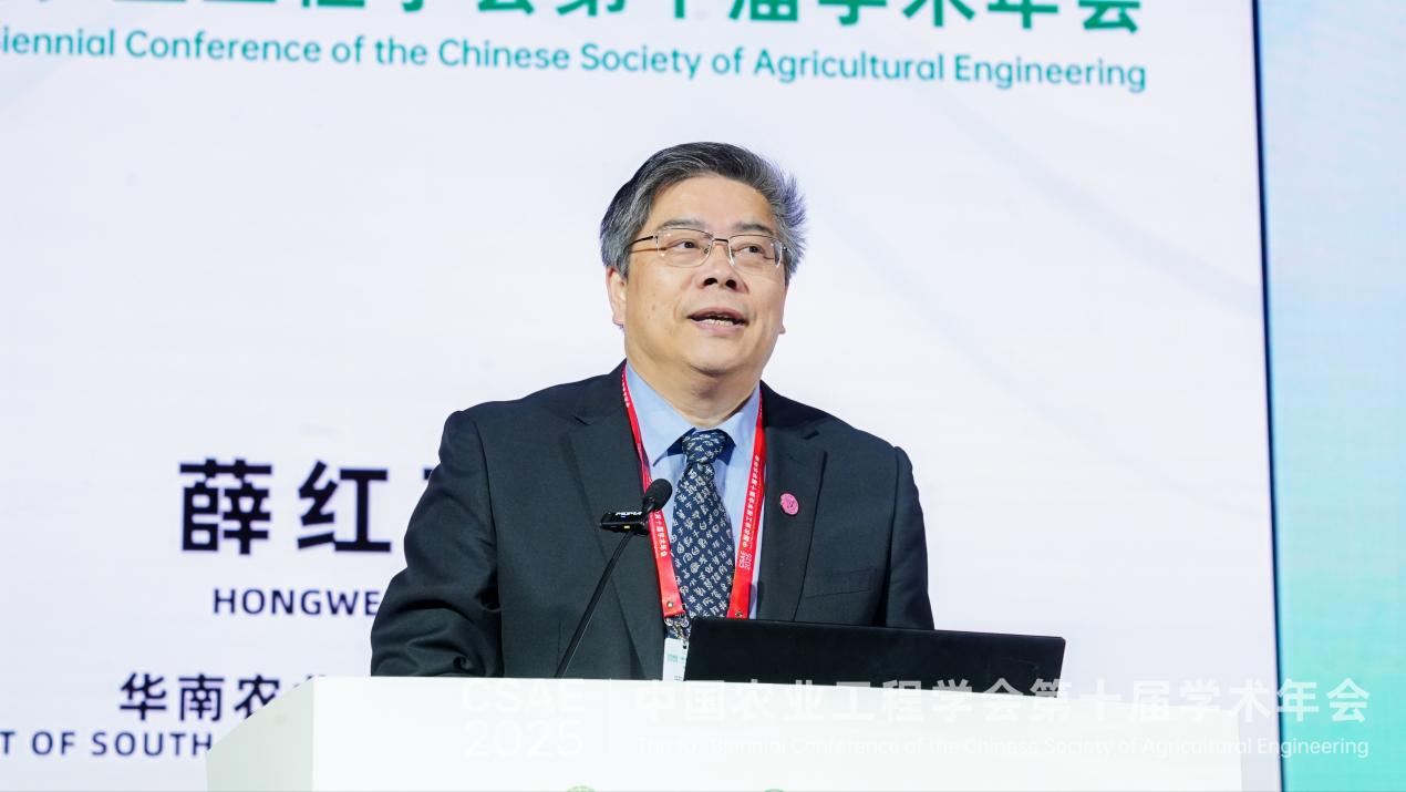 華南農(nóng)業(yè)大學(xué)校長薛紅衛(wèi)代表承辦單位致辭,他首先對(duì)與會(huì)的領(lǐng)導(dǎo)、嘉賓表示了誠摯歡迎,隨后簡要介紹了年會(huì)承辦情況,并就華南大學(xué)在農(nóng)業(yè)工程學(xué)科建設(shè)方面的主要成果做了簡要匯報(bào)。