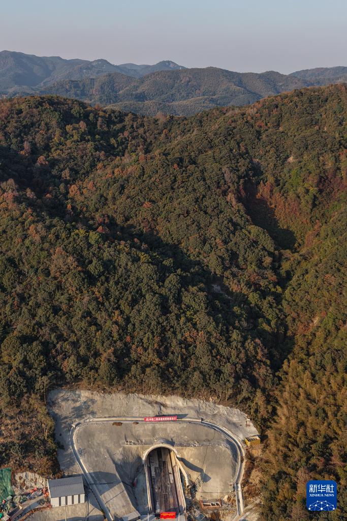 12月3日拍攝的通甬高鐵相岙隧道口(無人機照片)。
