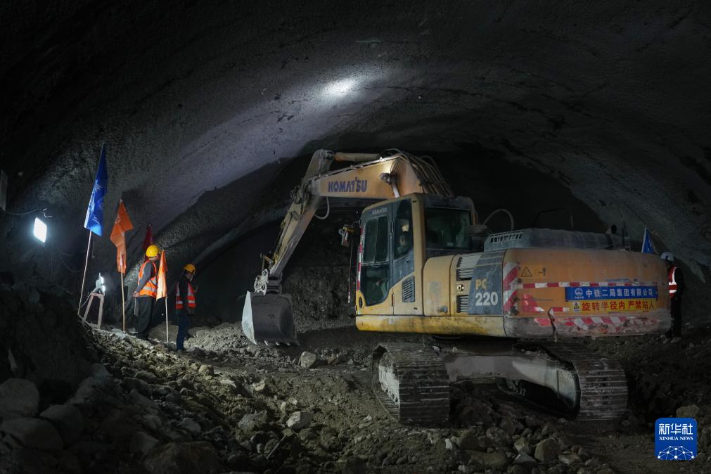 12月3日,中鐵二局建設(shè)者在通甬高鐵相岙隧道內(nèi)作業(yè)。