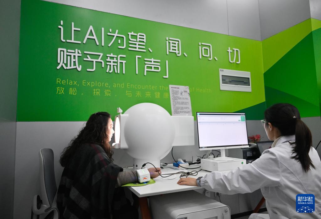 12月4日,在“AI·鏡界—南京人工智能生態(tài)街區(qū)”,一位女士在“AI診所”進(jìn)行健康檢測(cè)。