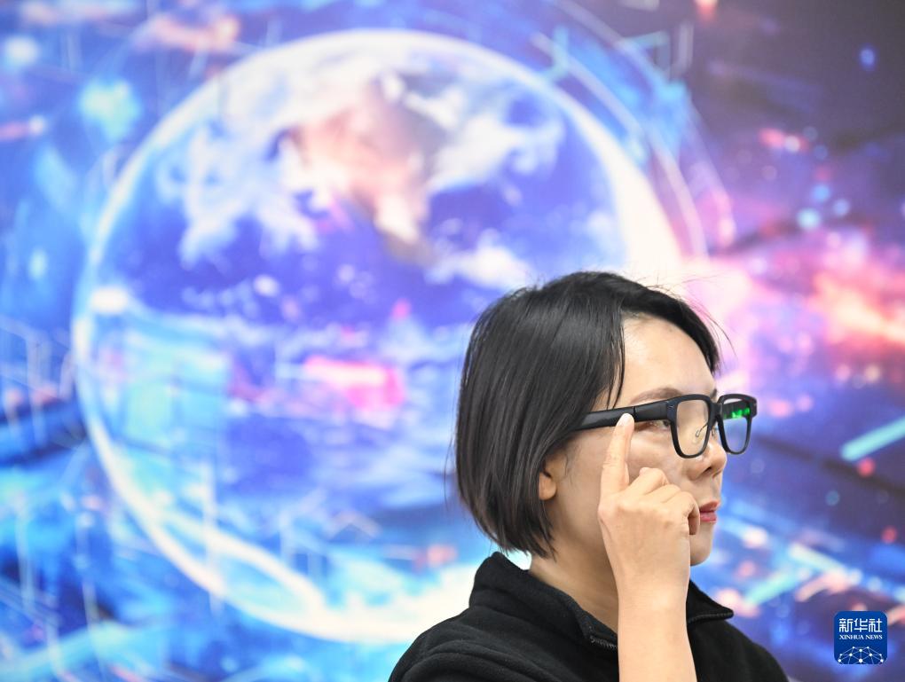 12月4日,在“AI·鏡界—南京人工智能生態(tài)街區(qū)”,工作人員展示一款A(yù)I眼鏡。