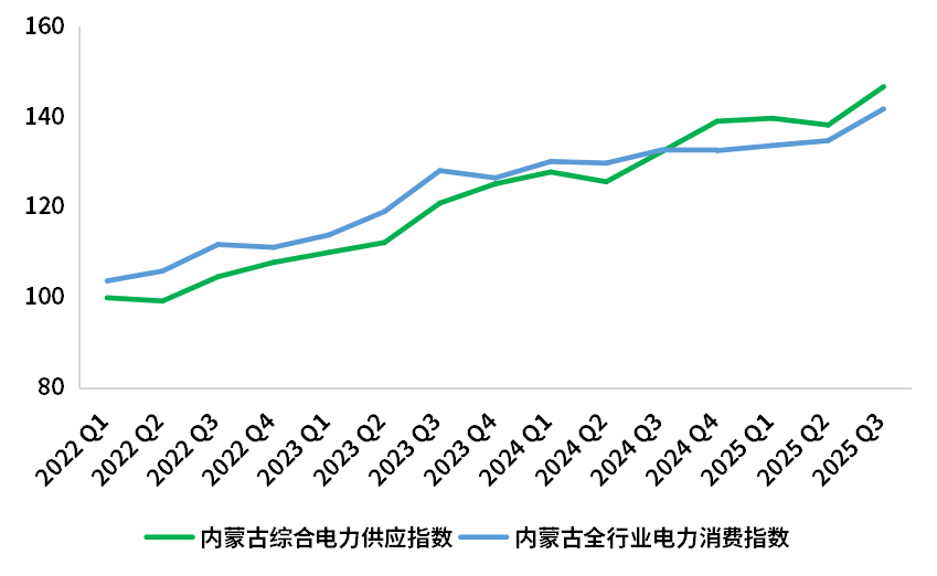 從用電端看,全區(qū)產(chǎn)業(yè)結(jié)構(gòu)深度調(diào)整,轉(zhuǎn)型升級趨勢明顯。制造業(yè)持續(xù)發(fā)揮“壓艙石”作用,2025年前三季度,制造業(yè)對全行業(yè)用電量增長的貢獻(xiàn)率近六成,通用設(shè)備制造業(yè)、專用設(shè)備制造業(yè)、汽車制造業(yè)、計算機(jī)、通信和其他電子設(shè)備制造業(yè)用電量均實現(xiàn)兩位數(shù)增長。在數(shù)字經(jīng)濟(jì)領(lǐng)域,內(nèi)蒙古搶抓全國一體化算力網(wǎng)絡(luò)內(nèi)蒙古樞紐節(jié)點(diǎn)建設(shè)機(jī)遇,在呼和浩特市、烏蘭察布市大力培育綠色算力著力培育綠色算力,互聯(lián)網(wǎng)數(shù)據(jù)服務(wù)用電量同比增加83.87%。