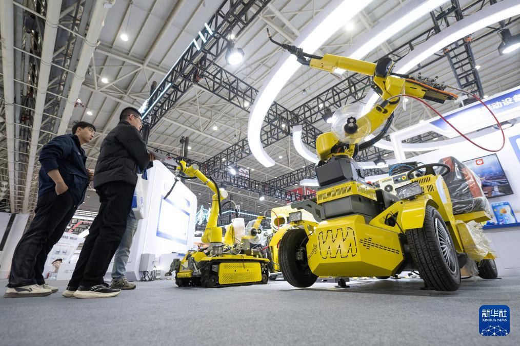 12月12日,參觀者在2025武漢國際工業(yè)設(shè)計博覽會上了解一款自行走全場景大件焊接機(jī)器人。